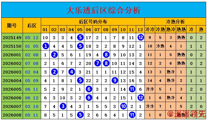 上期回顾:大乐透第2026008期:前区03、06、17、21、33,后区05、11,前区奖号和值为80,三区比为2:2:1,后区开出热热组合05、11