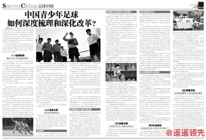 基于如此局面,我们在中国青少年足球的深度梳理和深化改革方面给予了如下意见。